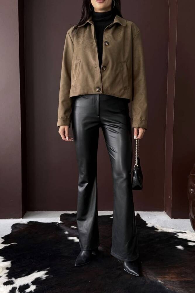 - Kruvaze yaka detayı ile modern ve zarif bir stil oluşturur.